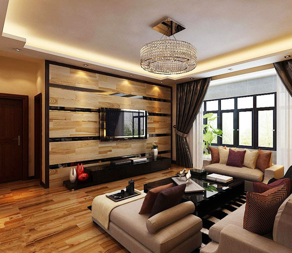 這是一間冷色調(diào)的客廳設(shè)計,給人一種冷艷典雅的無窮韻味。古典風(fēng)格的吊燈,搭配深色實木茶幾桌,電視背景墻采用深色實木地板拼花,這樣的設(shè)計特色,將客廳中復(fù)古意味升華,讓人體會到優(yōu)雅獨特的魅力。